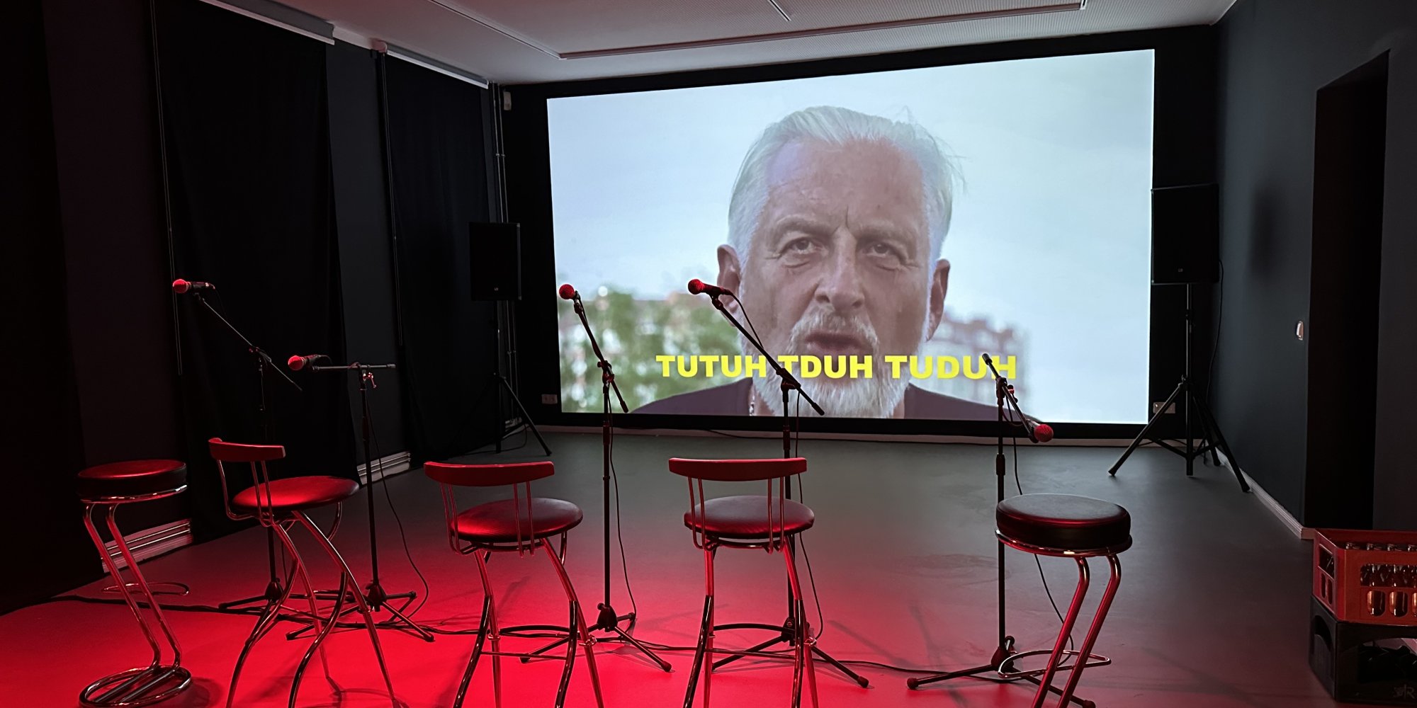 A karaoke bar where the sounds are not trite pop songs, but authentic sounds of war. The project Repeat After Me (2022-2024), presented by the originally Lviv-based collective Open Group at the Venice Biennale in 2024 and now being shown for the first time in the Czech Republic, subverts a familiar entertainment format into a chilling testament to trauma, memory, survival - and empathetic sharing. What we tend to dismiss as too superficial and entertaining is here transformed into a language of experience that cannot be overheard. Moreover, thanks to the conditions of the Olomouc installation, in the proper context of a night of fun without responsibility.