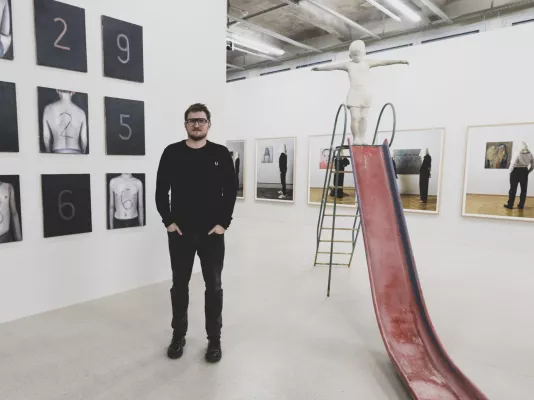 Dětství, přesněji řečeno téma určité vykořeněnosti jednotlivce, nebo jen jeho nepochopení okolím, provází mou tvorbu již několik let. Obrazy intuitivně vrstvím, příběhy a motivy se v nich často prolínají a někdy i opakují. Například v cyklu portrétů dětí s tričkem přes hlavu. Na výstavě je asi vztah mezi individualitou a kolektivem nejvíce patrný v sérii čísel, kde jsou číselné obrazy a detaily anonymních těl, která na své kůži nesou číselná označení. Mohou asociovat vězně v pracovních táborech, jejichž identitu zredukovali na číslo, ale třeba taky rodná čísla, čísla občanského průkazu a podobně. Někdo nám zkrátka přidělí automaticky vygenerovanou číselnou kombinaci a ta nás pak provází celý život.