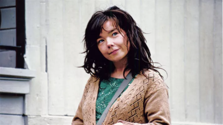Přední evropský režisér Lars von Trier je jedním ze zakladatelů dánského manifestu Dogma 95. Zde se však od těchto pravidel odklonil, aby vytvořil stylizovaný žánr hudebního a tanečního filmu. Na nákladném evropském projektu se podílela řada zemí, např. Dánsko, Francie, Švédsko, Itálie, SRN, Norsko či Finsko. Děj se ovšem odehrává ve Spojených státech v polovině šedesátých let. Hrdinkou je svérázná československá emigrantka Selma Ježková, jíž hrozí brzká slepota. Sama emigrovala do Států, aby tu zajistila oční operaci synovi, postiženému dědičnou chorobou. Selmu obklopují dobří lidé, přesto však zůstává ve svém údělu sama. Potíže překonává zejména díky vášni k muzikálu. S amatéry zkouší muzikál Za zvuků hudby a často pak muzikálová čísla v představách přenáší do reálného prostředí, v němž se pohybuje. Dominantou filmu, který podobně jako snímek Prolomit vlny řeší téma sebeobětování, zůstává výkon islandské zpěvačky Björk, jež se zde se svou výjimečnou rolí zcela identifikovala bez dalších ambicí na filmovou kariéru. Dokumentární způsob snímání pomocí ruční digitální kamery tvoří pak zvláštní a často diskutovaný kontrast k žánru melodramatu a muzikálu. Jedněmi obdivovaný, druhými odmítnutý film si odnesl z festivalu v Cannes obě hlavní ocenění - Zlatou palmu a navíc hereckou cenu pro Björk.