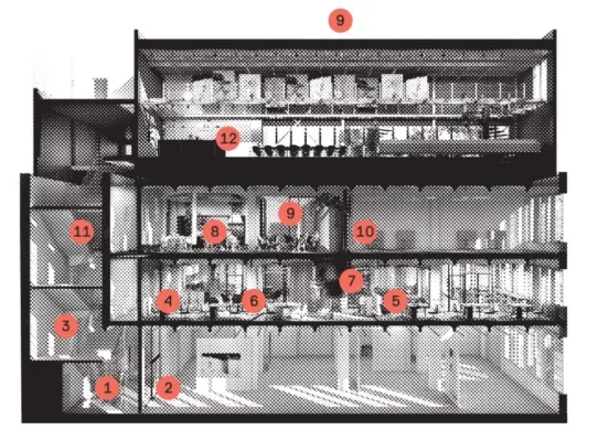 The length of the tour is approximately 40 minutes. Stations can be found in the building at the reception, in the corridors, in the coworking space, in the café and at the entrance to the normally inaccessible loft. The stations are easy to find using the brochure you get after purchase, along with a pencil to help you crack the Audiowalk code. We can't reveal more, you have to experience it.