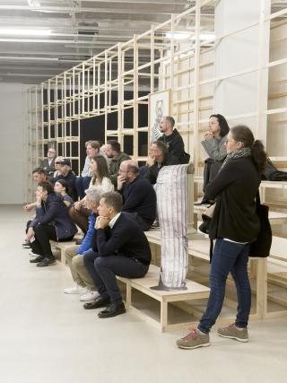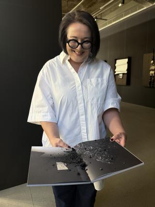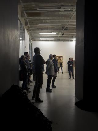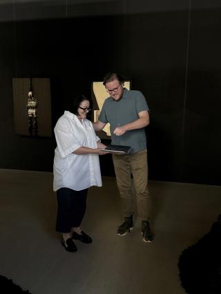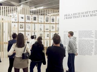Those who follow the Telegraph Gallery closely will not have missed the catalogue launch, accompanied by a guided tour, at the end of September. Curator Jan Kudrna together with Lucia Tallová guided us through the exhibition. The baptism itself was held by the then house manager Michal Blaško, in an unusual way - the baptism was done with charcoal from the exhibition itself.