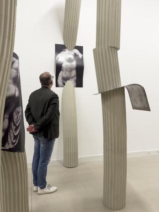 The catalogue was created in two versions. In addition to the standard edition, 50 limited edition copies were also published, which can be purchased along with a special edition serigraph. The cover of the publication is decorated with a reproduction of a selected piece of marbled paper, while each serigraph from the limited edition is unique. It depicts a bust of an ancient woman and the texture of the stone that is placed over her face. The melancholic motif combined with the marbled paper evokes a sense of nostalgia - remember this paper from old photo albums