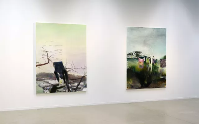 Pro výstavu v Telegraphu bylo vybráno sedm bezejmenných děl z posledních let tvorby, která tvoří kompaktní celek svými náměty i atmosférou. Ve všech dílech nalezneme již zmíněný projev, který umělec v posledních letech ve své tvorbě užívá. Temná atmosféra, jistá míra abstrakce, pozadí na němž se prolínají barvy jedna do druhé, stejně jako toxicky fosforeskující zelená, narušený prostor, figury jejichž končetiny jsou vykloubeny, realita roztříštěna na fragmenty, odhalená a narušená intimita. Pokřivený svět, jak ho zde Mortimer předkládá, je odrazem stavu neklidu a je pozorovatelem vnímán jako nestabilní a nejasný, jako zahalený v neprostupné mlze, která jej táhne k zemi, ale jíž je stále více omamován.