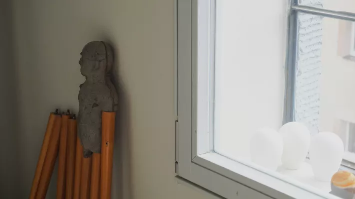 Patrik Adamec (*1994) je rodákem severočeského Chomutova, ale dekádu svého života strávil s rodiči na Floridě. Po návratu do České republiky se Patrik rozhodl pro studium architektury a průmyslového designu na ČVUT. V roce 2017 byl přijat na Akademii výtvarných umění. Patrik Adamec je velikým badatelem, vrhá se do průzkumu městských uliček s velkou fantazií a upřímným zájmem o lidské archetypy. Dá se říct, že město pro něj není pouze skupinou budov, ale živým ekosystémem, kde se prolínají lidské příběhy. Pracovní stůl, který považuje za zrcadlo duše, je plný nechtěných, odhozených a zapomenutých pokladů z městských průzkumů. Nejen že pozoruje, ale aktivně sbírá fragmenty všedního života, které přetváří do uměleckých děl. V jeho hravých objektech se odráží otázka: „Co to vlastně je?” Vytváří spojení mezi konvencí a nahodilostmi, nechává diváka znejistit a přemýšlet. Jeho tvorba je pozvánkou k nahlédnutí do jiné perspektivy. Do světa, který obklopuje každého z nás, ale často jej přehlížíme.