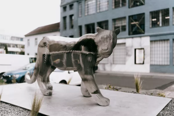 Před Telegraphem můžete nově vidět sochu jednoho z nejvýraznějších českých sochařů Michala Gabriela. Mimo své bohaté kariérní zkušenosti, tento umělec současně působí jako vedoucí ateliéru sochařství na Fakultě výtvarných umění v Brně a je držitelem Ceny Jindřicha Chalupeckého z roku 1994. Svá díla zasazuje do prostorových a architektonických kontextů a následně zkoumá, jakým způsobem se sochy s prostředím vzájemně ovlivňují. Přímo před naší budovou si můžete prohlédnout sochu šelmy ze série kočkovitých šelem, které mají symbolizovat přírodu a její sílu. Socha nese název Mimikry. Kromě šelem ze zvířecí říše ztvárňuje také koně nebo žraloky. Žraloky sám autor vnímá jako symbol fyzické dokonalosti. Gabriel však zobrazuje také lidskou figuru. Ta v jeho podání mnohdy působí až surrealisticky, avšak umělec popisuje svá díla jako expresivní a sám sebe vnímá jako procesuálního umělce, který nechává svá témata a sochy růst v souvislostech a možnostech zpracovávaného materiálu.