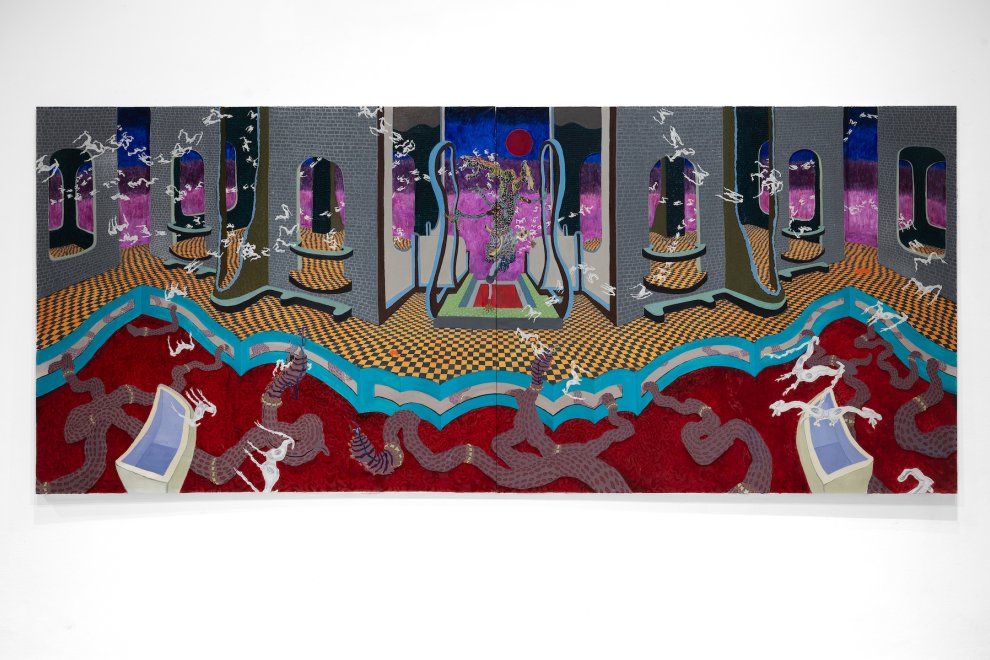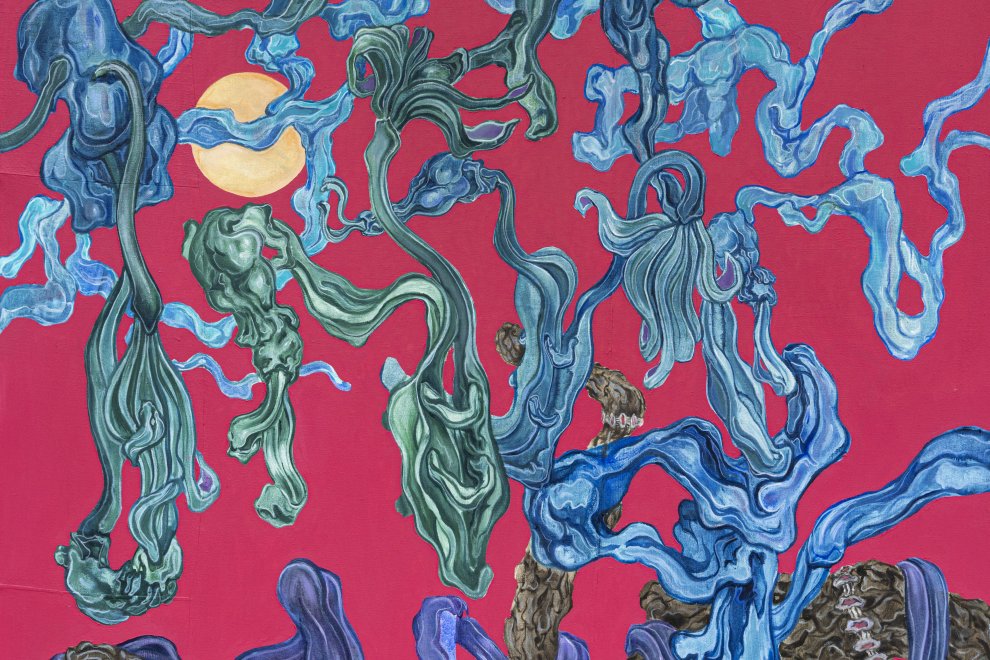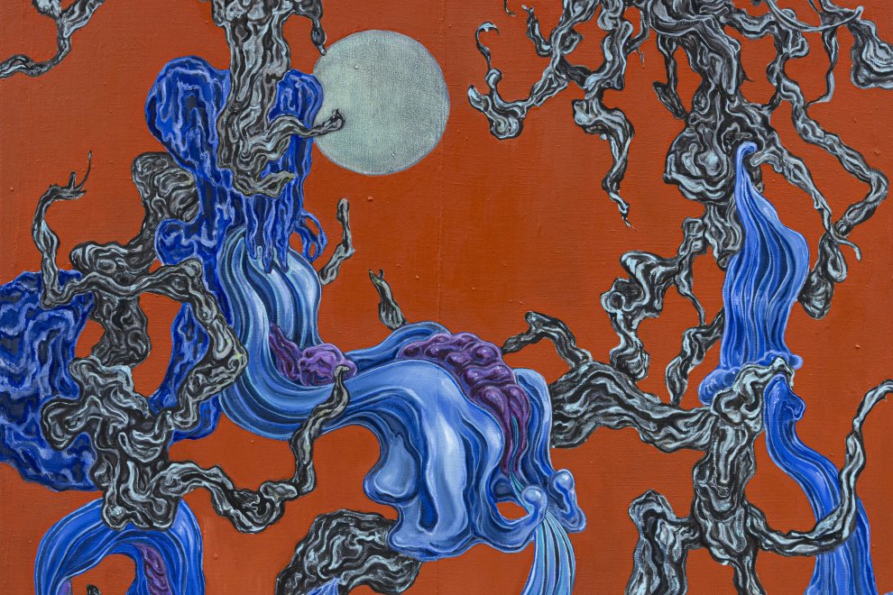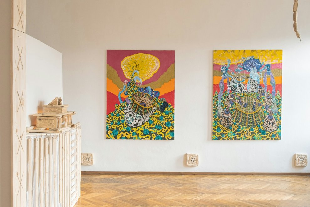 Kanrec Sakul (*1989) se věnuje detailním olejomalbám, obsedantním kresbám a surovým objektům či instalacím. V jeho malbách převládá výrazný zájem o experimentování se strukturami či organickými formami. Záměrně pracuje s opakováním, geometrickými tvary nebo relativní perspektivou, což se odráží v expresivní a absurdní barevné paletě. Variací a kombinací lazurních a pastózních částí, fauvistickou citlivostí a použitím barev buduje surrealistické mikrosvěty, v nichž dominují architektonické výjevy s nejasnou funkcí, dobou a místem své existence. Sakul nabízí různé totemické objekty, biomorfní tvary, detaily interiérů, plošiny, klece, imaginární obřadní místa nebo náznaky městských struktur, které se odvíjejí na drobných formátech i monumentálních plátnech.