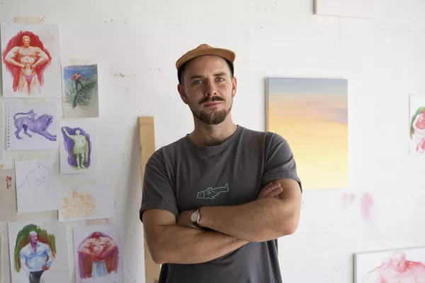 Samuel Kollárik, narozený v roce 1992 v Bojnicích na Slovensku, získal své umělecké vzdělání nejprve na Ostravské univerzitě v ateliéru volné grafiky Marka Sibinského, následně na Akademii výtvarných umění v Praze, kde studoval ateliér Malby IV pod vedením Marka Meduny a Petra Duba. Jeho umělecká práce se zaměřuje na malbu a zkoumá téma menšinových skupin v rámci hnutí skinheads. Pokud bychom měli zabřednout do konkrétnější sféry, Kollárik je inspirován skupinami S.H.A.R.P. (Skinheads against Racial Prejudice) nebo R.A.S.H. (Red and Anarchist Skinheads), které jsou známé jako antinacistické a vystupující proti násilí. Samuel Kollárik se věnuje malbě figury a krajiny. Kontroverzní témata, která Kollárik zobrazuje, jsou zvýrazněna užitým formálním přístupem – silnou barevností a deformací. Často zobrazovanými tématy jsou násilí, absurdita a emoce. Někdy až komické výjevy mají za úkol upoutávat divákovu pozornost – Kollárikovo pojetí těchto témat tak často funguje v kontrastu s jejich vážností. Podle umělcových vlastních slov je důležitým aspektem jeho tvorby – a tvorbě předcházejícího výzkumu – maskulinita, a to především ve vztahu k současné společnosti.